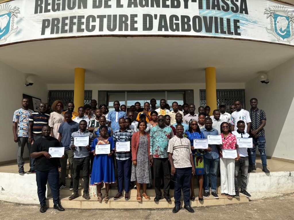 La phase de collecte de données s’est déroulée du 12 au 24 juin 2025 après un séminaire de formation de deux jours au sein du conseil régional de l’Agneby-Tiassa. Ce sont au total 15 équipes qui ont été reparties sur l’ensemble des quatre départements de la région. Les équipes étaient constituées d’agents enquêteurs locaux et natifs de la région ainsi que des assistants cartographes venus des universités de San Pedro et de l’Université de Bouaké. Les équipes ont profite de ce projet pour découvrir la région dans toute sa splendeur.